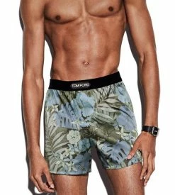 TOM FORD DUSTY HIBISCUS SILK BOXERS – GREEN