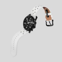 Tom Ford 002 Limited Edition, automatic chronograph movement. Case made of titanium with brushed finish and black DLC coating. Polished titanium crown black DLC with black onyx insert. Exhibition caseback with TOM FORD signature etched in the sapphire glass. Limited to 150 pcs with each piece numbered on caseback. Matte black dial with label and printed glossy white numerals, round cut white Super luminova painted hands, sapphire crystal with anti-reflective coating. Case dimensions: 43.5mm round. Water-resistant to 3 ATM. Perforated racing strap in black calf leather with titanium buckle brushed finish and black DLC coating. Limited Edition packaging with titanium color paper outer box. Swiss made.