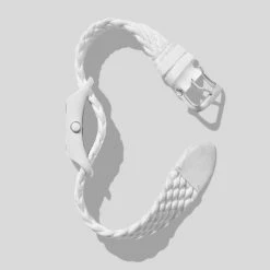 Tom Ford 004, quartz movement. case made from 100% ocean plastic with stainless steel caseback plated in white PVD, stainless steel crown plated white PVD with ocean plastic inlay. Glossy white dial with diamond cut black painted hands, sapphire crystal with anti-reflective coating on top. Case dimensions: 27mm x 48.5mm rectangular. Water-resistant to 3 ATM. TF signature braid white strap engineered and woven out of 100% ocean plastic with stainless steel buckle plated white PVD. Recyclable packaging made from 100% ocean plastic, recycled paper box and interior. Swiss made.