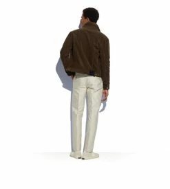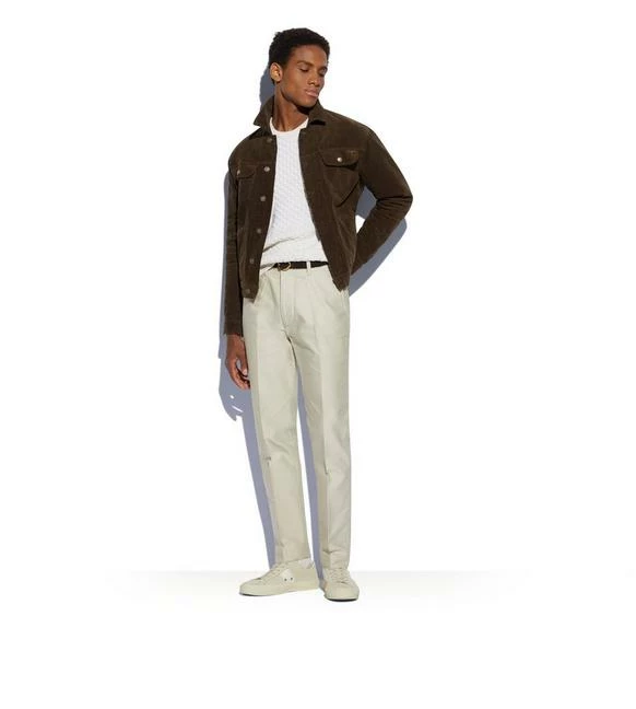 - TOM FORD LEATHER PATCH ON WAIST OF JACKET, TACK BUTTONS AND WAISTBAND ADJUSTERS