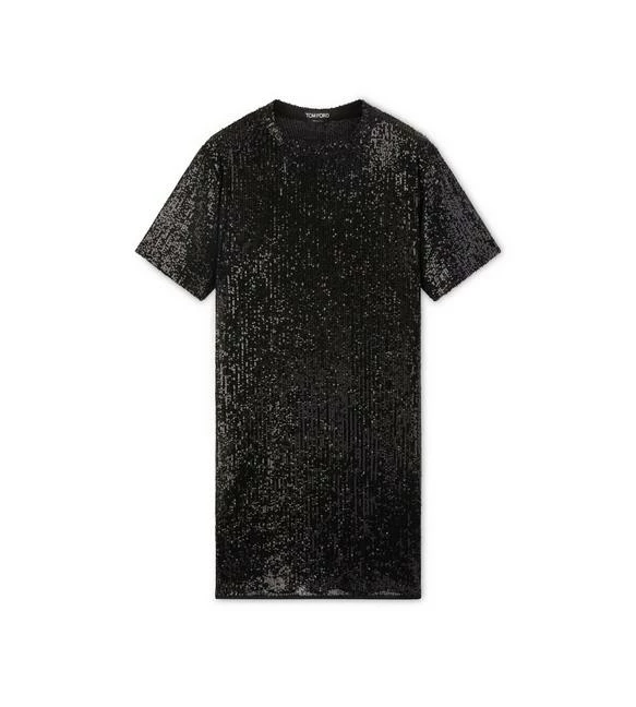 ALL OVER SEQUINS MINI T-SHIRT DRESS
