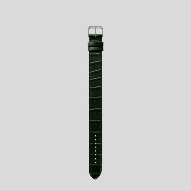 An interchangeable alligator strap Made in Italy. Medium Straps accommodate 001 size 40mm and 002 size 34mm. Large Straps accommodate 001 size 44mm and 002 size 38mm and 40mm.