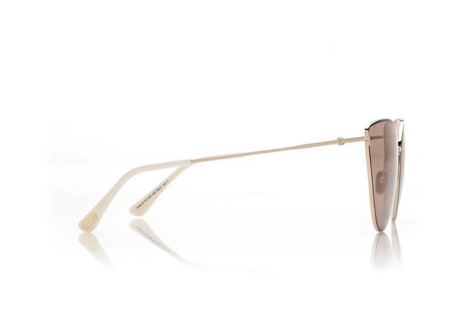 Feminine cat eye style in metal with light profiles, adjustable nose pads and metal ‘T’ temple decoration.