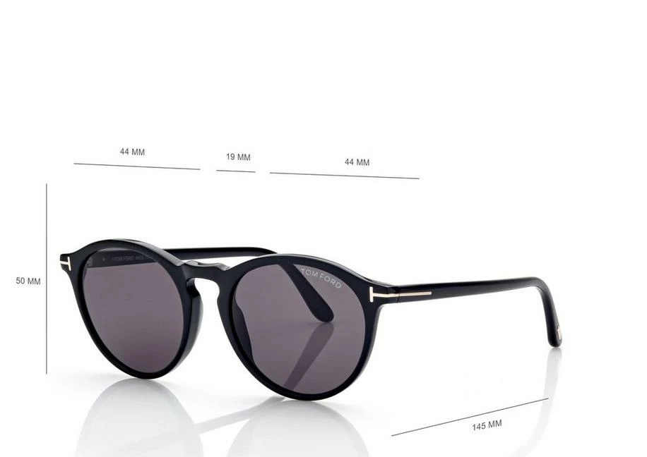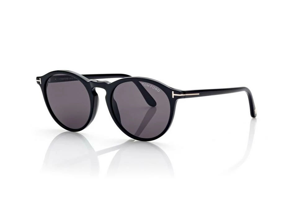 - SHINY ACETATE STYLE WITH SHINY METAL T LOGO ON THE TEMPLE.