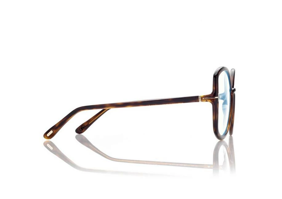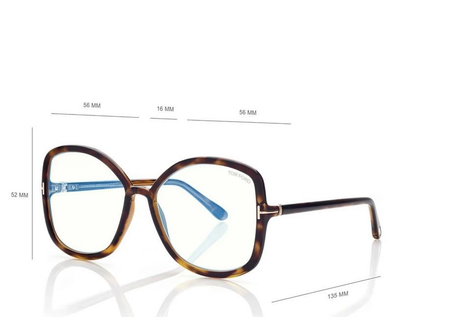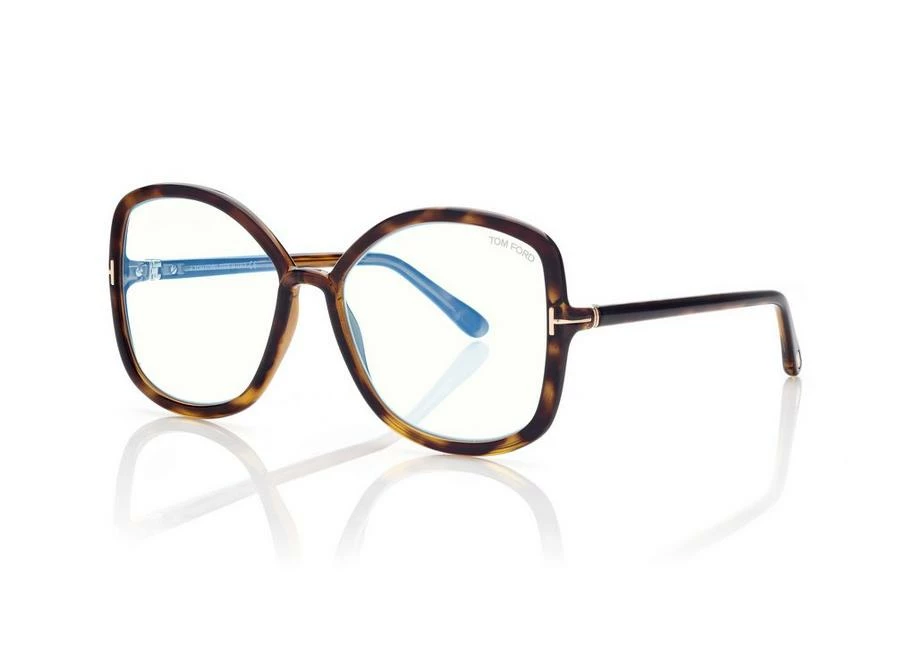 Discover the latest ready-to-wear clear lenses now available in TOM FORD Eyewear. These protective lenses reduce risks of blue lights and increase visual comfort from long exposure to digital devices. Feminine butterfly style in plastic enriched by metal decoration on the temple and metal ‘T’ logo in relief.