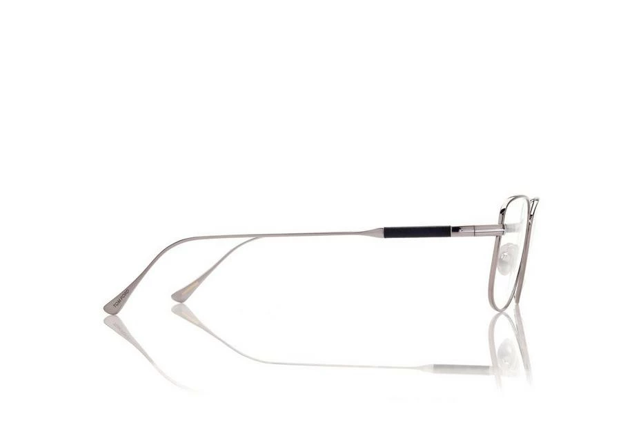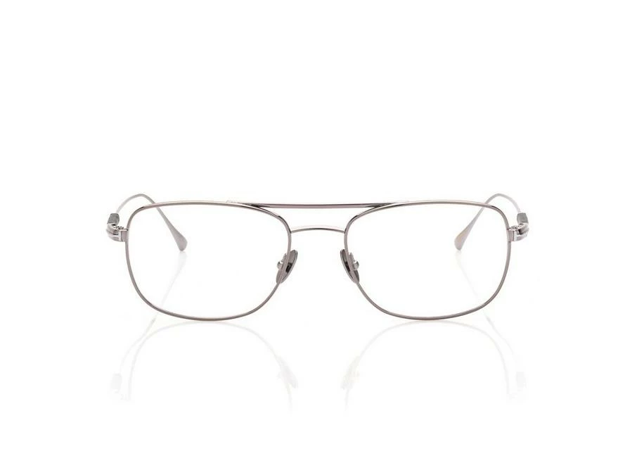 TITANIUM NAVIGATOR SHAPE WITH LEATHER INSERTS ON THE TEMPLES. METAL ‘T’ TEMPLE DECORATION AND ADJUSTABLE NOSE PADS.