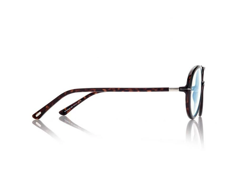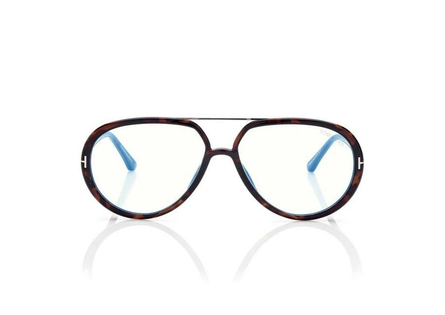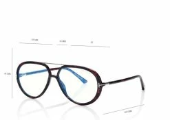 Discover the latest ready-to-wear clear lenses now available in TOM FORD Eyewear. These protective lenses reduce risks of blue lights and increase visual comfort from long exposure to digital devices. Trendy pilot style in plastic with metal top bar and metal ‘T’ temple decoration.