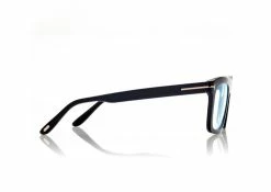 Discover the latest ready-to-wear clear lenses now available in TOM FORD Eyewear. These protective lenses reduce risks of blue lights and increase visual comfort from long exposure to digital devices. Rectangle acetate style with bold lines and metal ‘T’ temple decoration.