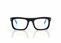 Discover the latest ready-to-wear clear lenses now available in TOM FORD Eyewear. These protective lenses reduce risks of blue lights and increase visual comfort from long exposure to digital devices. Rectangle acetate style with bold lines and metal ‘T’ temple decoration.