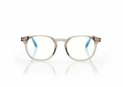 Discover the latest ready-to-wear clear lenses now available in TOM FORD Eyewear. These protective lenses reduce risks of blue lights and increase visual comfort from long exposure to digital devices. Easy to wear round acetate style enriched by metal T logo decoration.