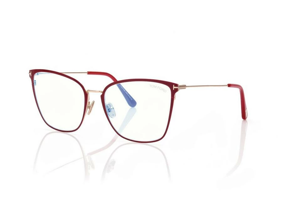 Discover the latest ready-to-wear clear lenses now available in TOM FORD Eyewear. These protective lenses reduce risks of blue lights and increase visual comfort from long exposure to digital devices. Soft butterfly metal style with adjustable nose pads and metal ‘T’ temple decoration.