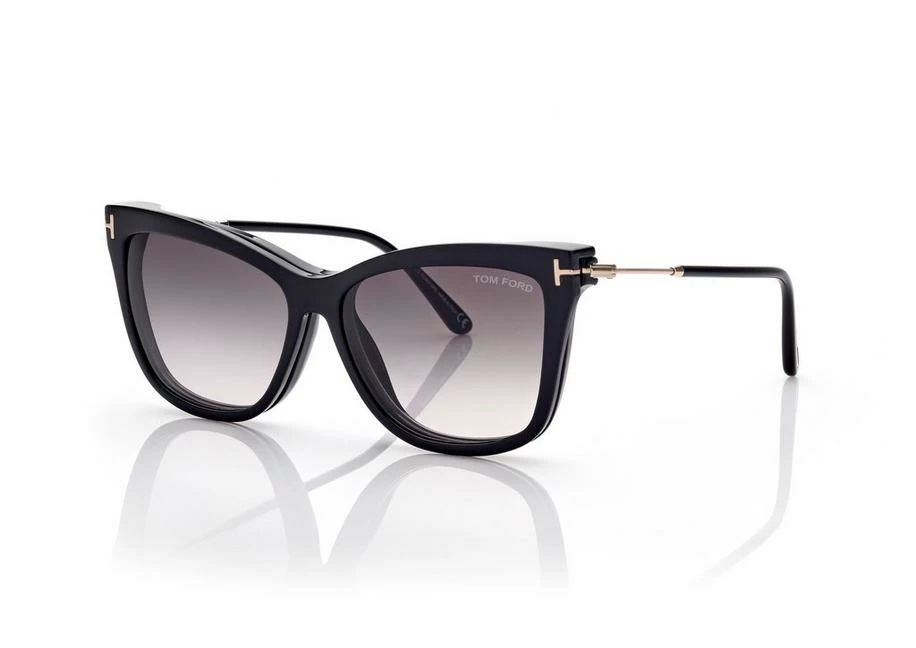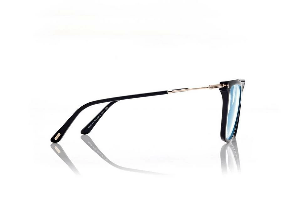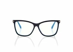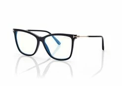 Discover the latest ready-to-wear clear lenses now available in TOM FORD Eyewear. These protective lenses reduce risks of blue lights and increase visual comfort from long exposure to digital devices. Soft cat eye style with acetate front and metal temples. Sold with a magnetic clip on to turn into fashionable sunglasses.