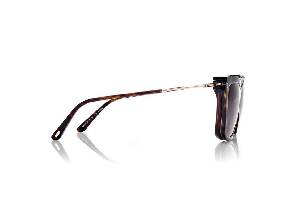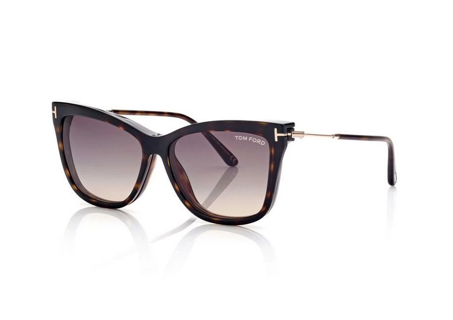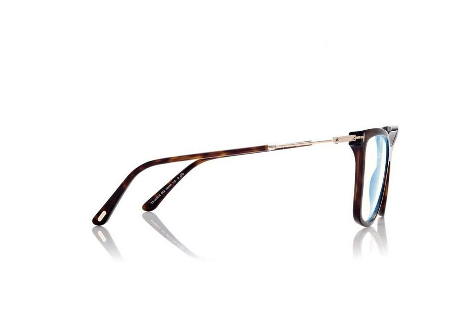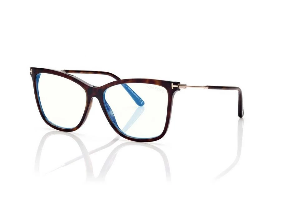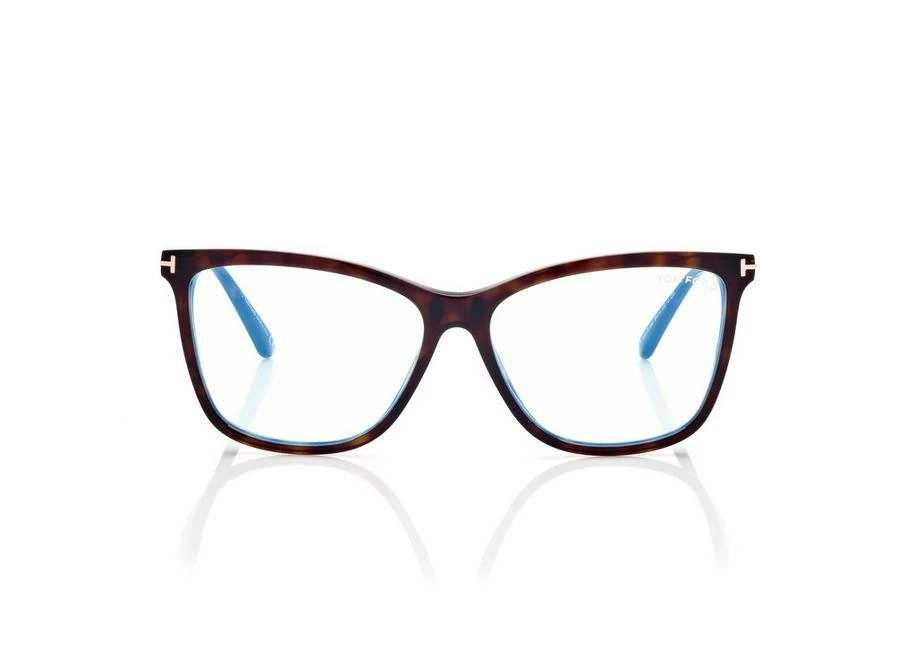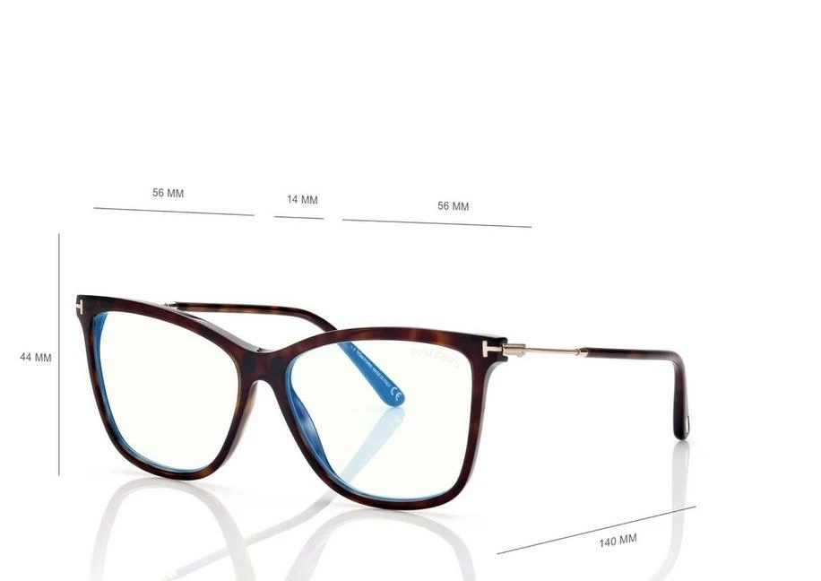 Discover the latest ready-to-wear clear lenses now available in TOM FORD Eyewear. These protective lenses reduce risks of blue lights and increase visual comfort from long exposure to digital devices. Soft cat eye style with acetate front and metal temples. Sold with a magnetic clip on to turn into fashionable sunglasses.