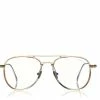 Soft squared acetate style with metal bridge and ‘T’ temple decoration.