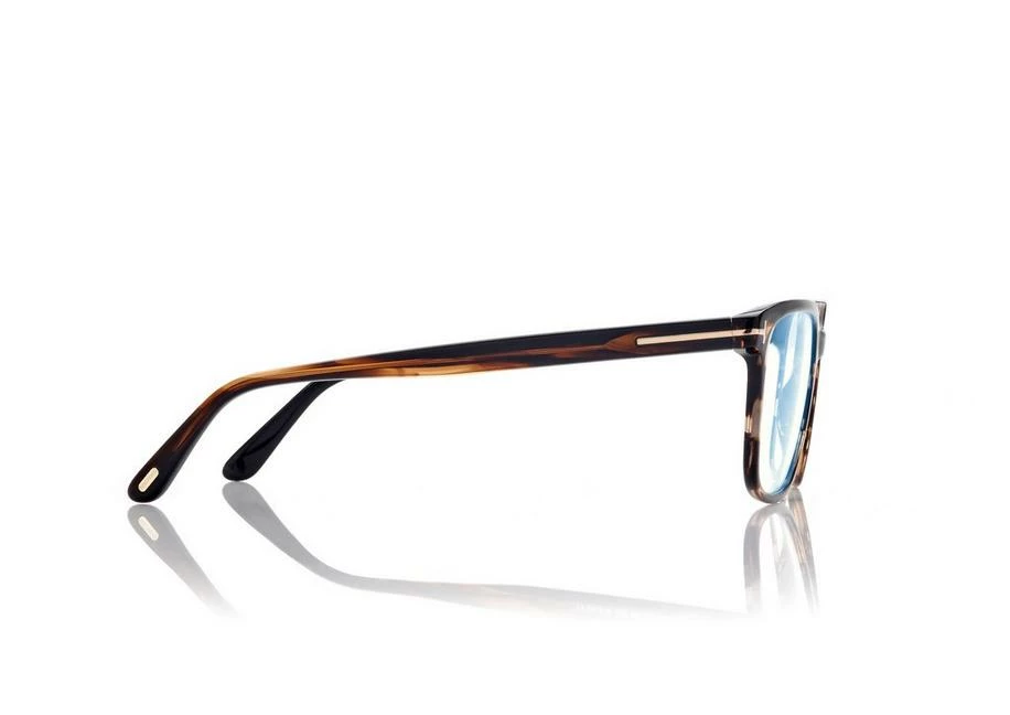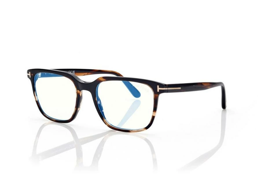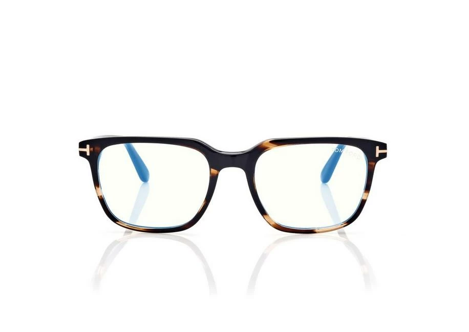 Discover the latest ready-to-wear clear lenses now available in TOM FORD Eyewear. These protective lenses reduce risks of blue lights and increase visual comfort from long exposure to digital devices. Square acetate style enriched by metal T logo decoration.