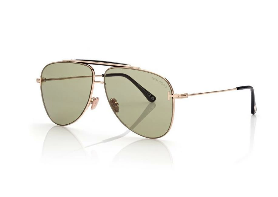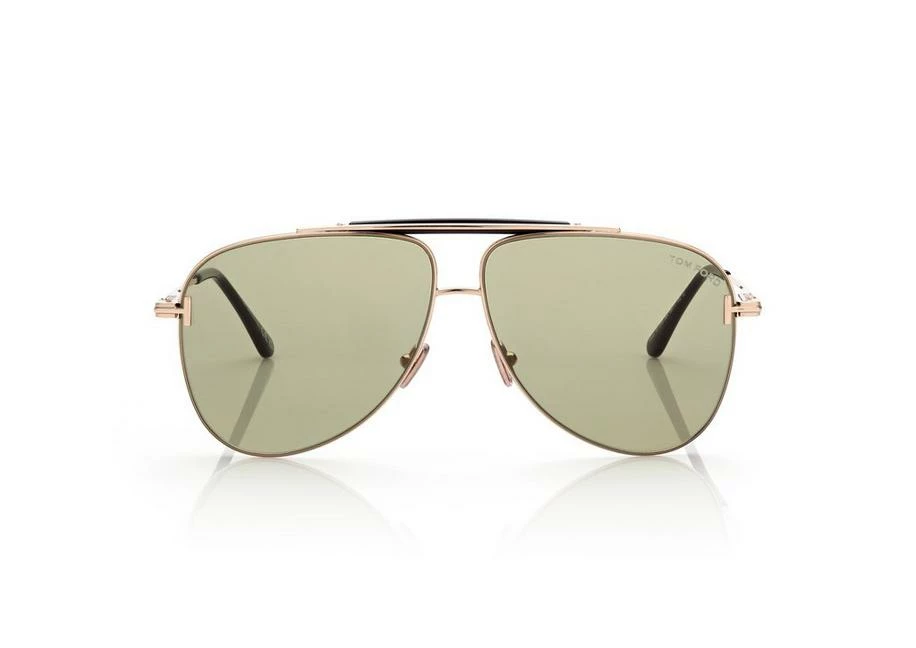Pilot metal frame characterized by a light construction with brow bar and characterized by metal T logo decoration.Â