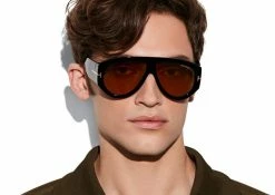 Fashonable pilot style in acetate with bold design and metal ‘T’ temple decoration.