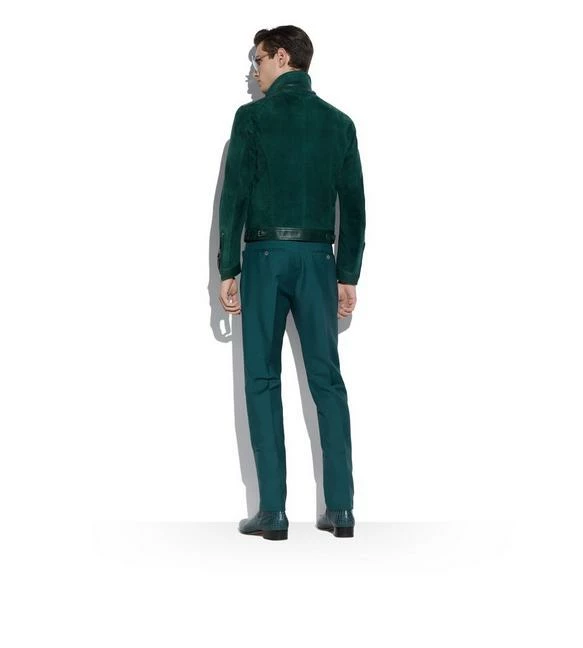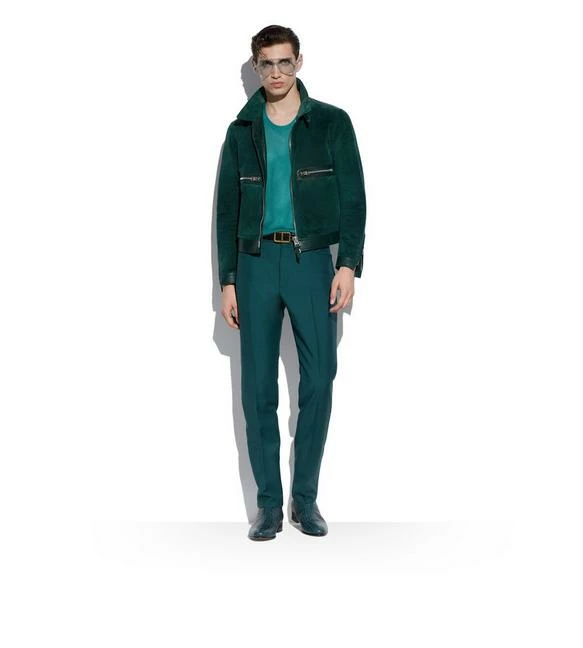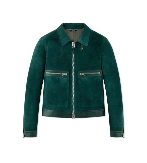 - SMOOTH LEATHER FRAMING ALONG WAIST, SHOULDERS, FRONT ZIP, CUFFS ANDÂ POCKETS