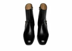 - ELONGATED SHAPE WITH A SQUARISH TOE BOX AND BEVELED NOSE