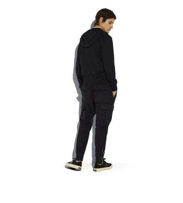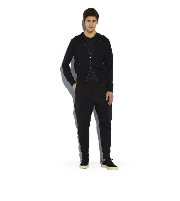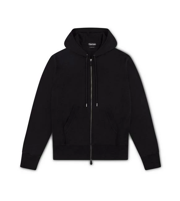 A LIGHTWEIGHT COTTON, SILK AND CASHMERE BLEND FABRIC, SIGNATURE TOM FORD SUEDE DETAILS AND FULLY FASHIONED CONSTRUCTION ELEVATE THIS MODERN HOODIE. THE ZIP-UP STYLE IS FINISHED WITH A DOUBLE-ENDED GUNMETAL TOM FORD ZIPPER AND FRONT POCKETS.