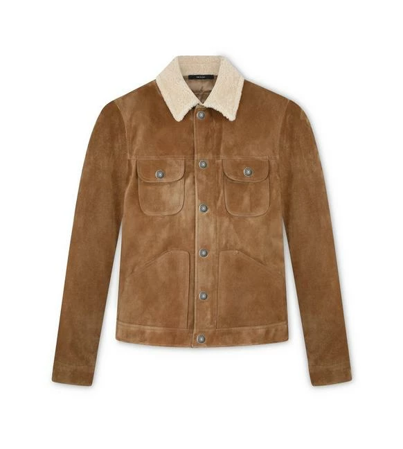 CASHMERE SUEDE SHEARLING TRIM TRUCKER