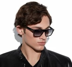 - Shiny black acetate style with shiny rose gold metal T temple decoration and top bar with gradient lenses