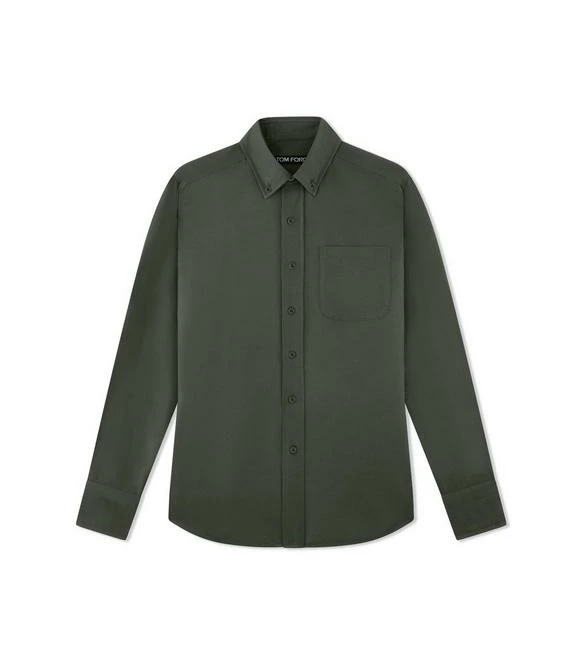 TOM FORD COTTON CASHMERE TWILL SLIM FIT SHIRT – ASPHALT