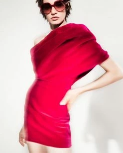 COTTON VELVET ONE SHOULDER MINI DRESS