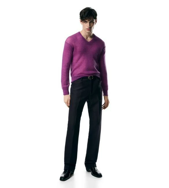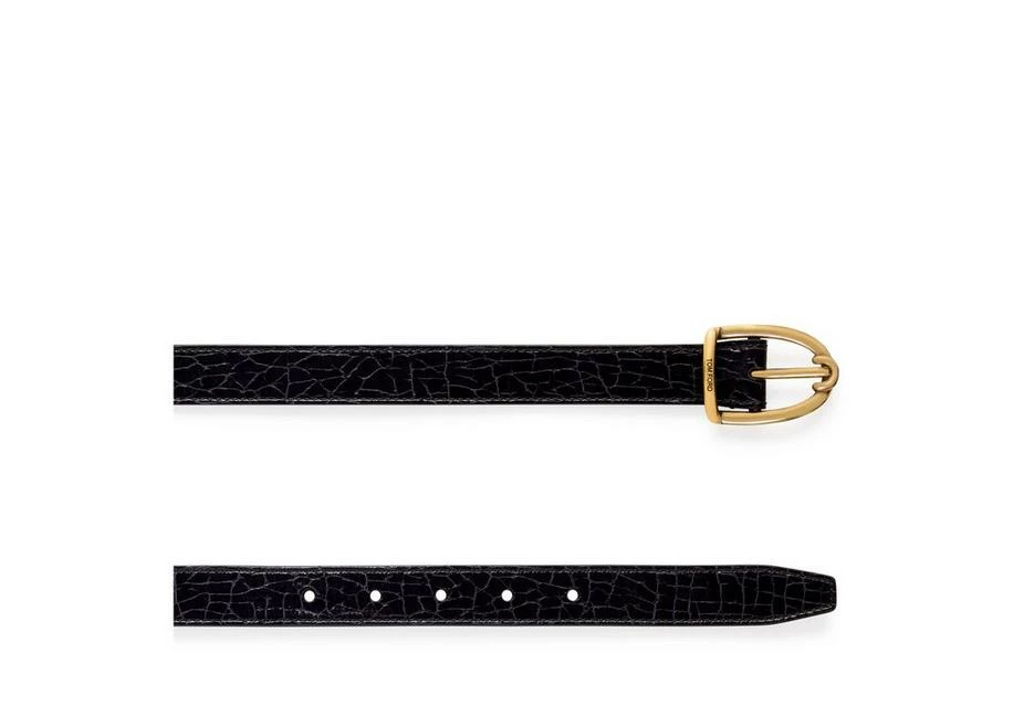 TOM FORD CRACKLED LEATHER ANGLED BUCKLE BELT – DARK PURPLE