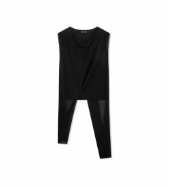 - CREW NECK TANK TOP BASE WITH SHEER FRONT AND BACK PANELS ATTACHED AT SHOULDERS THAT BECOME SLEEVES