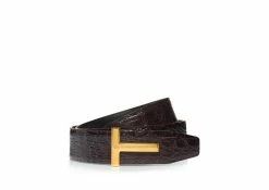 TOM FORD CROCODILE T ICON BELT – AUBERGINE