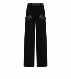 - QUILTED LEATHER WAISTBAND AND POCKETS DETAIL