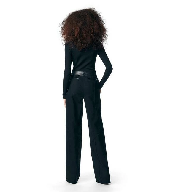 COMFORT DENIM & LEATHER WIDE LEG PANTS