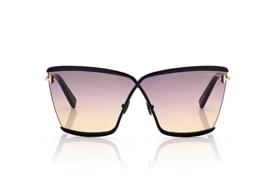 - SHINY METAL STYLE WITH SHINY METAL T LOGO ON THE TEMPLE.