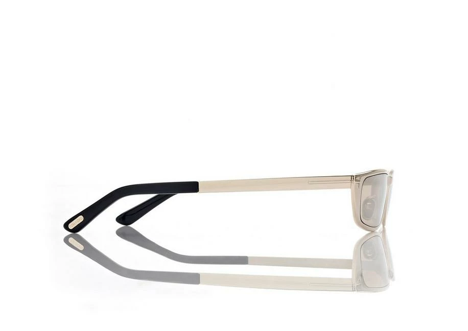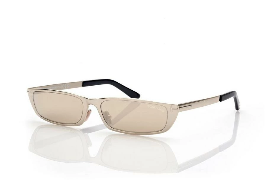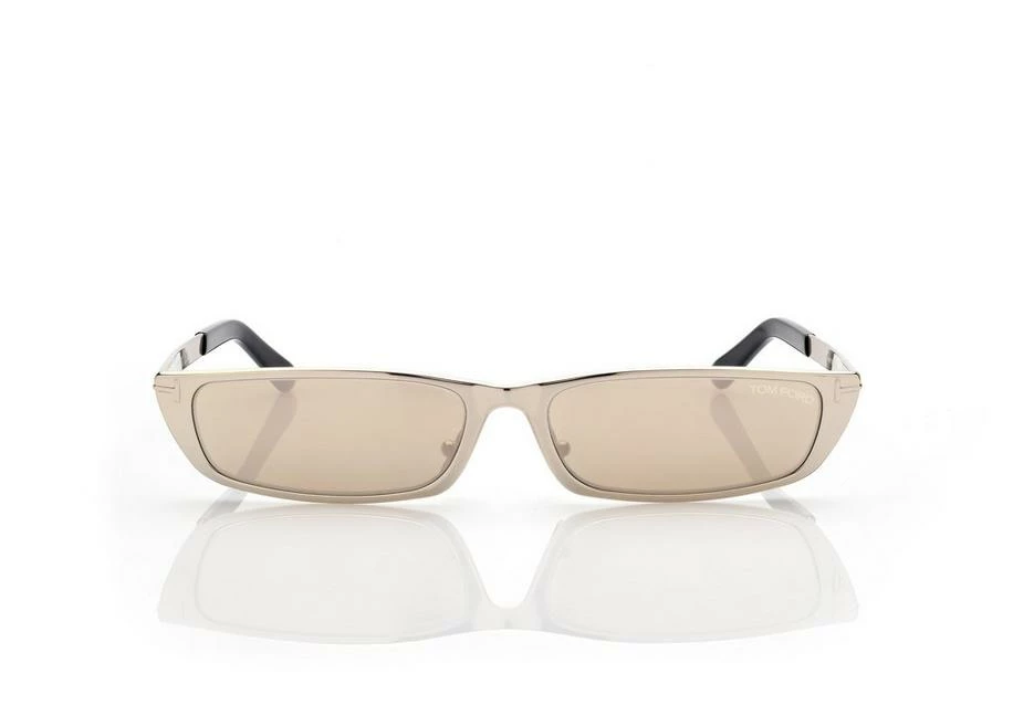 Narrow squared style totally in metal enriched by metal ‘T’ temple decoration.