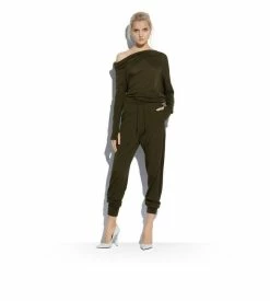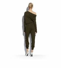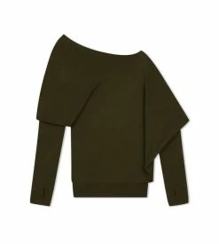 TOM FORD FINE CASHMERE SILK OFF THE SHOULDER KNIT – MILITARY GREEN