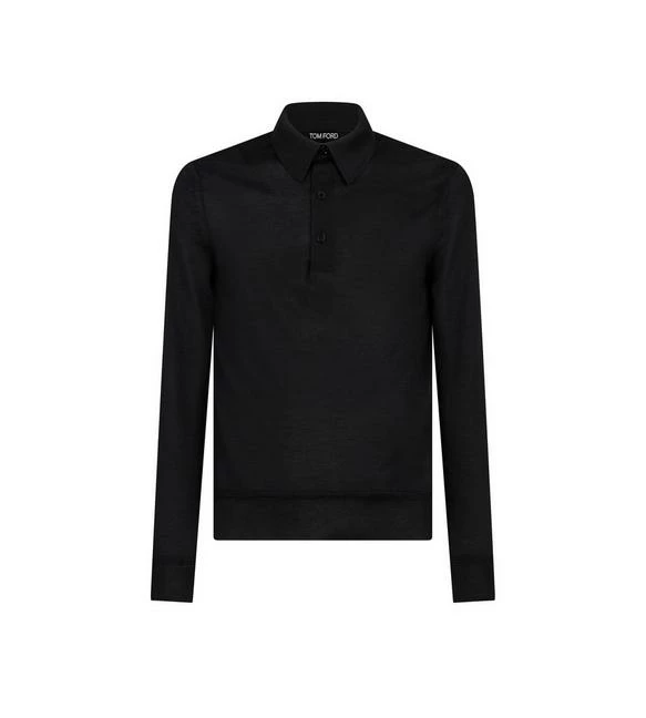 TOM FORD FINE GAUGE CASHMERE SILK POLO – BLACK
