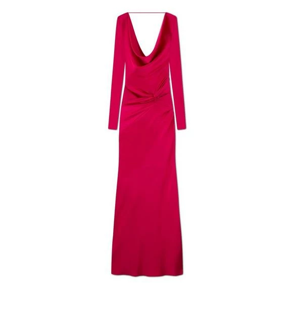 FLUID DOUBLE FACE SATIN CRISS CROSS EVENING DRESS