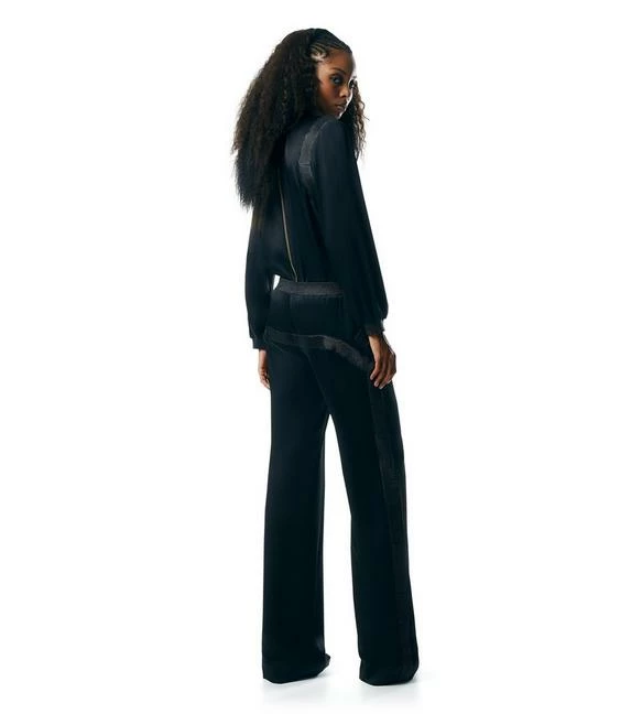 - METALLIC SOFT RIBBED LEATHER INSERTS ON NECKLINE, SHOULDERS AND CUFFS