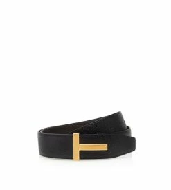 TOM FORD GRAIN LEATHER RIDGE T BELT – BROWN + BLACK