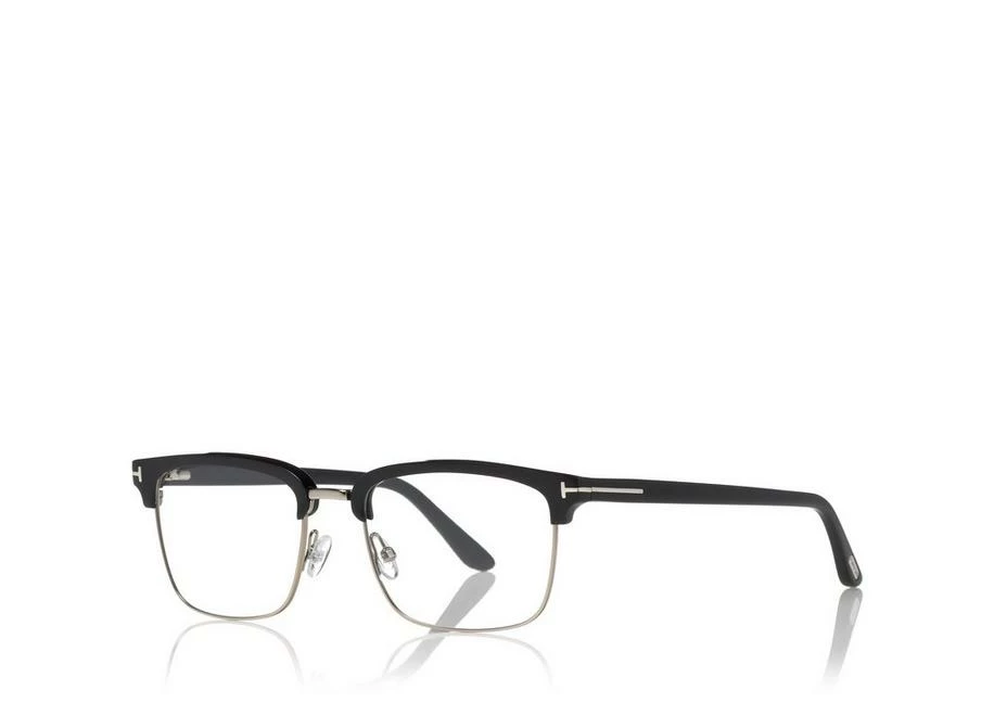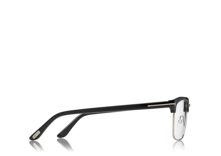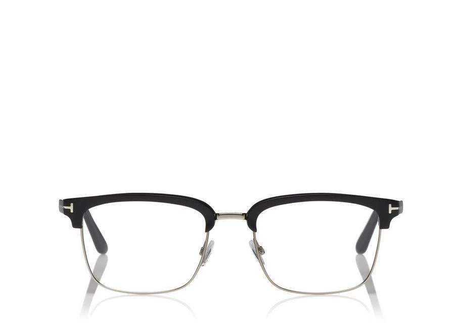 Soft squared style with acetate eyebrow and metal eye-rim. Acetate temple enriched by metal T logo decoration.