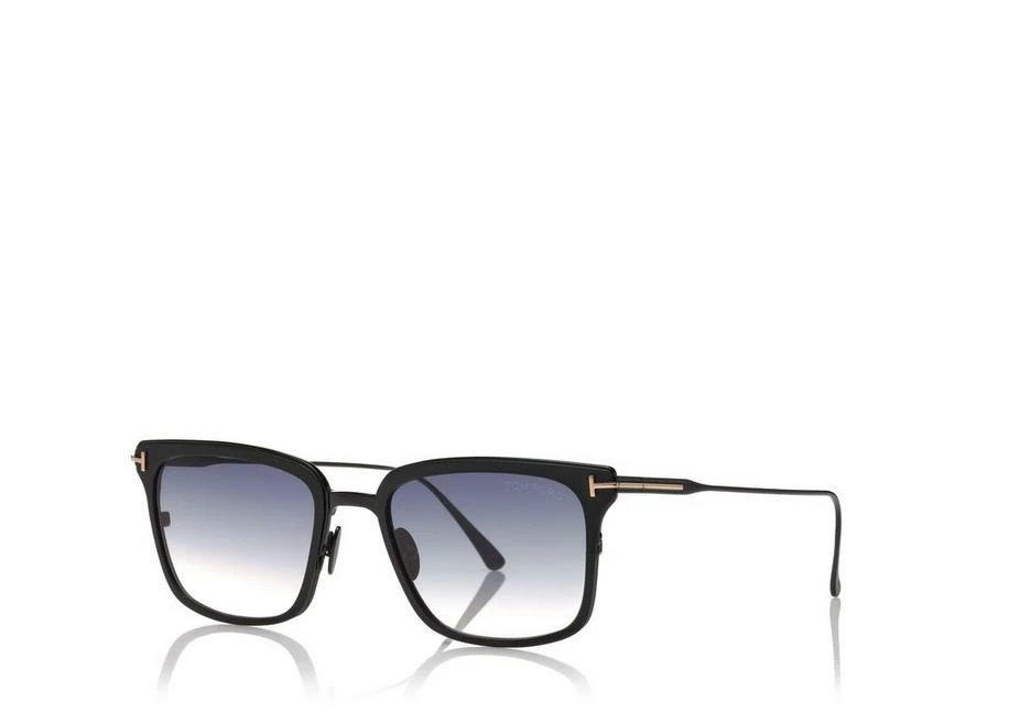 Squared style characterized by a light precious structure in titanium. Metal ‘T’ temple decoration. 100% UV protection lenses. Made in Japan.