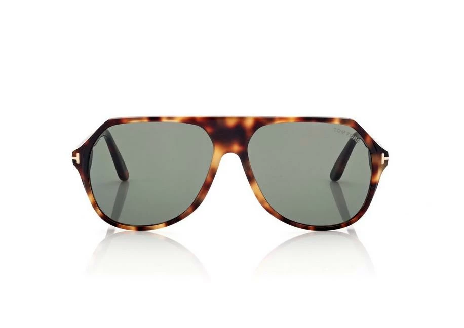 - SHINY ACETATE STYLE WITH SHINY METAL T LOGO ON THE TEMPLE.