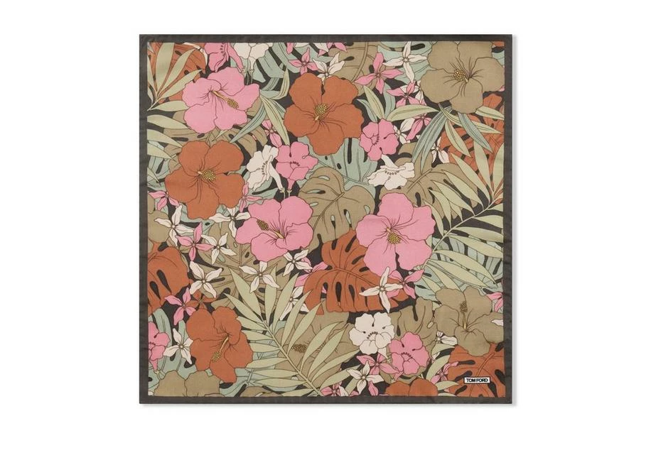 TOM FORD HIBISCUS PRINT POCKET SQUARE – PINK + GREEN