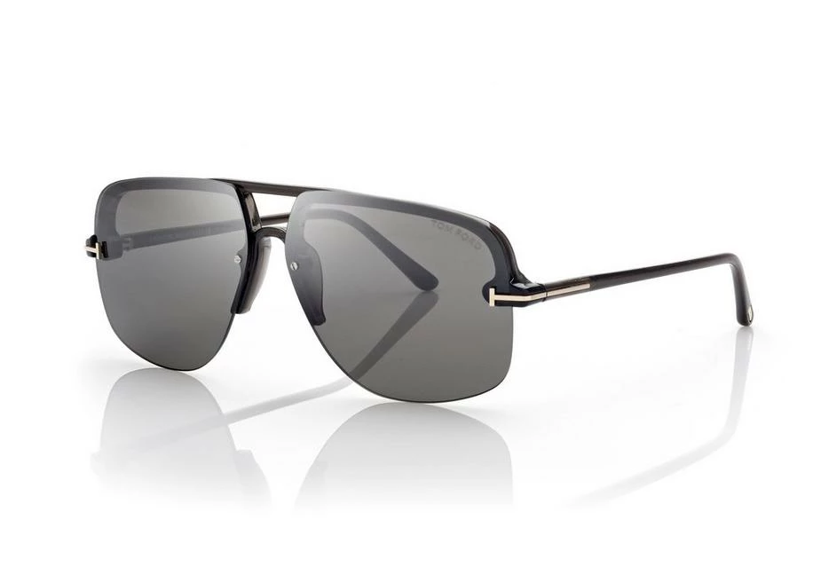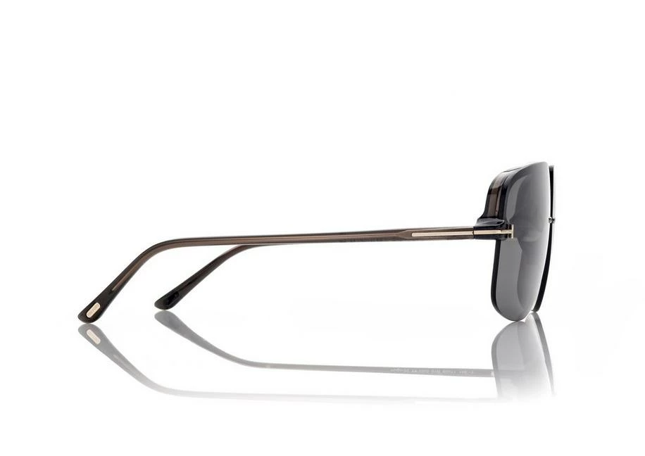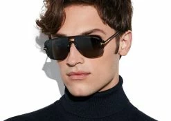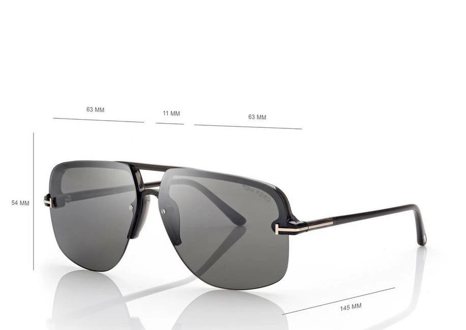 Navigator style with combined front between metal and plastic. Metal ‘T’ temple decoration.