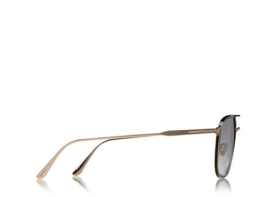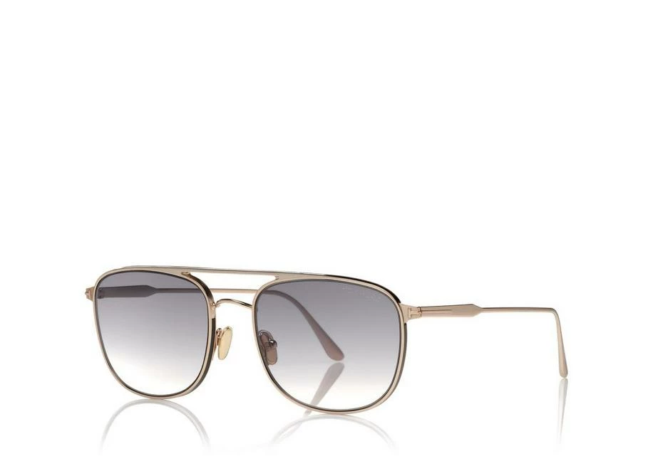 Squared metal style characterized by double bridge, with metal ‘T’ temple decoration.