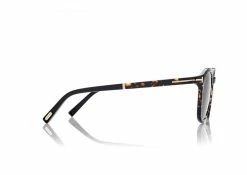Round acetate style enriched by with black metal ‘T’ temple decoration and metal ‘T’ logo decoration.