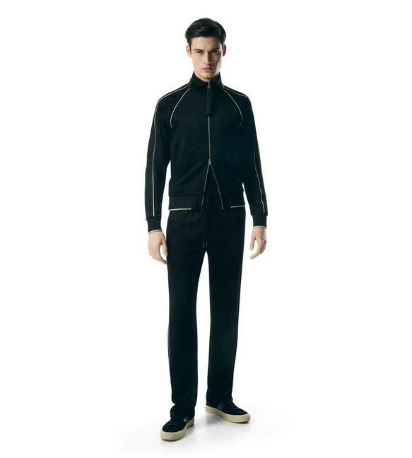 TOM FORD JERSEY ZIP THROUGH WITH PIPING – BLACK