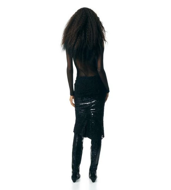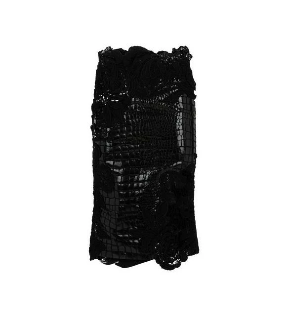 LACE AND SOFT PRINTED CROC LEATHER SKIRT