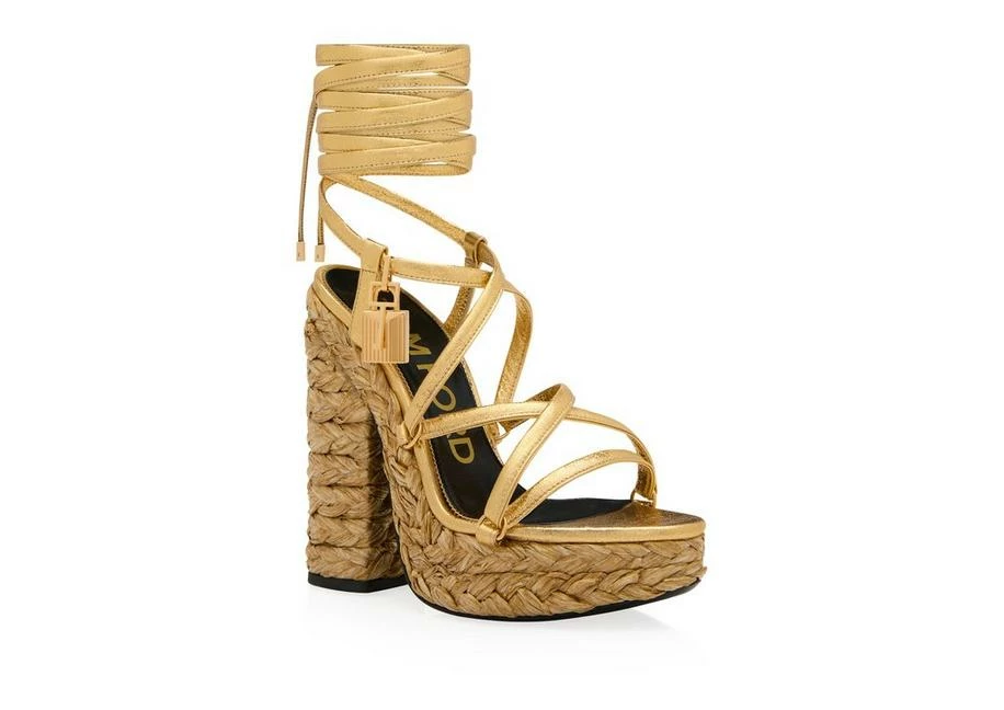 LAMINATED NAPPA LEATHER MAXI ROPE ANKLE WRAP PLATFORM SANDAL